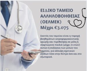 Αυτό αφορά κάλυψη μέρους εξόδων για ιατροφαρμακευτική περίθαλψη του μέλους ή των εξαρτώμενων παιδιών μέχρι την ηλικία των 21 ετών και του / της συζύγου. Οι πόροι του ταμείου προέρχονται από έσοδα της ΟΕΛΜΕΚ και το ύψος του βοηθήματος μπορεί να φτάσει έως και τις €3.075, εφόσον τα έξοδα υπερβαίνουν τις €6.835. Ο / Η …
