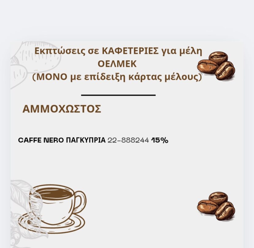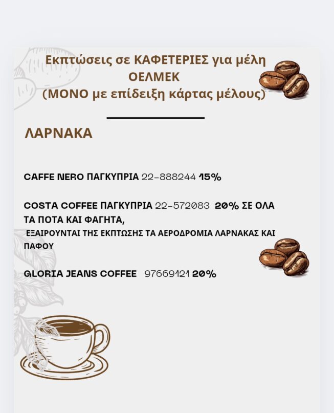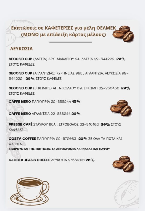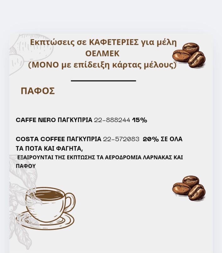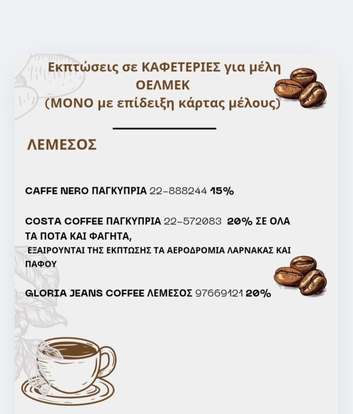 Εκπτώσεις για μέλη ΟΕΛΜΕΚ (ΜΟΝΟ με επίδειξη κάρτας μέλους)
