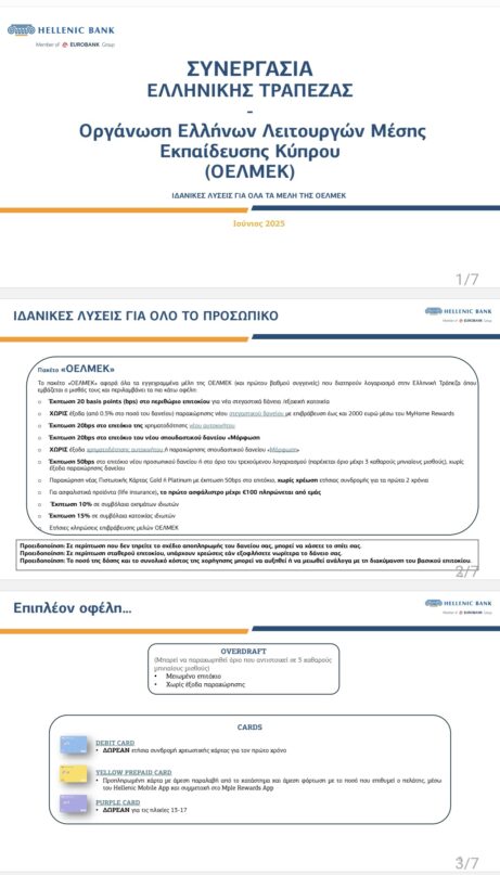 Για περισσότερες πληροφορίες να απευθύνεστε στα κατά τόπους καταστήματα της Ελληνικής Τράπεζας (EUROBANK)τα οποία είναι ενημερωμένα για τη συνεργασία με την ΟΕΛΜΕΚ.
